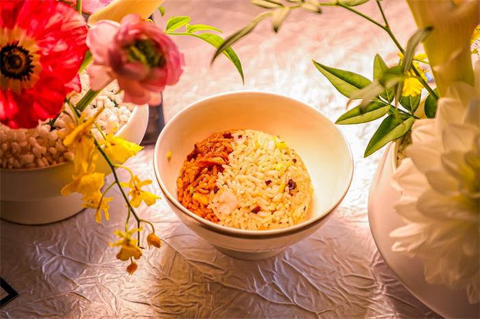 前菜五重奏就让我口水收不住了!金不换拌角螺的清新脆爽,客家手撕鸡与脆皮叉烧的咸鲜碰撞,最绝的是马踏湖脆藕裹着薄壳米,一口咬下仿佛同时站在山巅与海岸线!甘师傅的「酸子姜花甲王」酸爽到天灵盖震颤,杨师傅的「古法煨炖泉州牛排」软烂到用舌尖就能化开!压轴的「封神鸳鸯炒饭」看似平凡却暗藏玄机——据说这就是综艺里让评委集体起立的决赛作品!