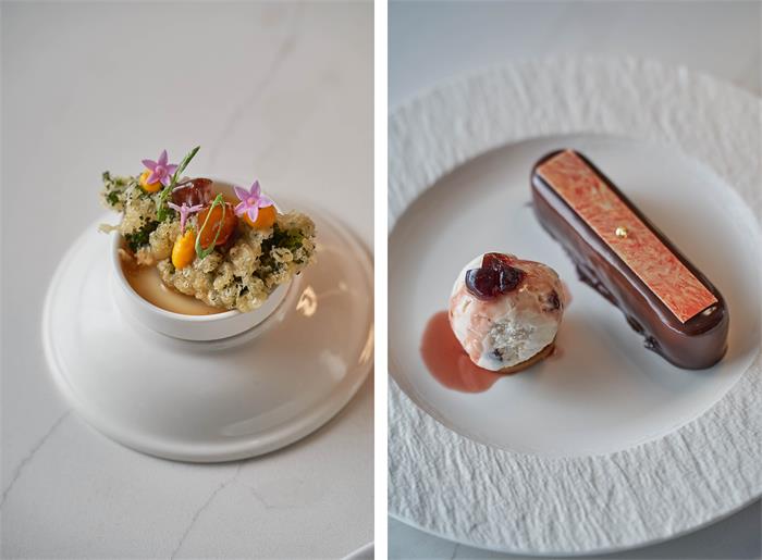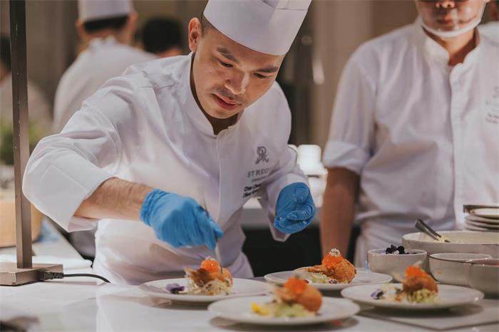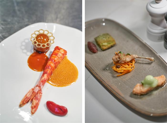 三位不同国家的主厨——葡萄牙Penha Longa度假村的米其林一星Lab by Sergi Arola餐厅主厨Vladmir Veiga、新加坡瑞吉酒店的行政主厨Fabio Granata,还有The Astor Grill餐厅的主厨Angelo Sergio联手,彻底刷新了高级餐饮的体验上限!他们在玻璃花房里,像指挥交响乐一样,精心演绎每一道菜品。每一道菜都像一件会消失的艺术,整场晚宴就像一座流动的博物馆,吃得人眼花缭乱,回味无穷。