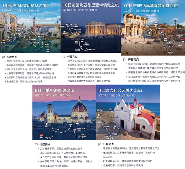 全新的海轮航线!(划重点!)专为中国游客定制的地中海之旅!5条全新线路,从希腊的圣托里尼到意大利的罗马,在盛夏的蔚蓝海岸,直接把雅奢生活模式开启。全中文服务:船上的标识全看得懂,服务员沟通零障碍,甚至吃的饭都合你的中国胃!这种“海外游轮初体验”的安全感,直接拉满。