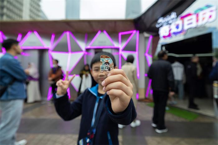 离场前,不少游客在徽章交换区排起小队——只要自带一枚徽章,即可免费兑换限量版“熊猫胖胖”主题徽章。该系列共六款,涵盖吉达、利雅得、埃尔奥拉、德拉伊耶、红海与沙特主题,每日限量750枚,先到先得。现场还可扫码参与互动,领取沙特骆驼、小海龟等特色玩偶,延续这场阿拉伯奇遇的记忆。